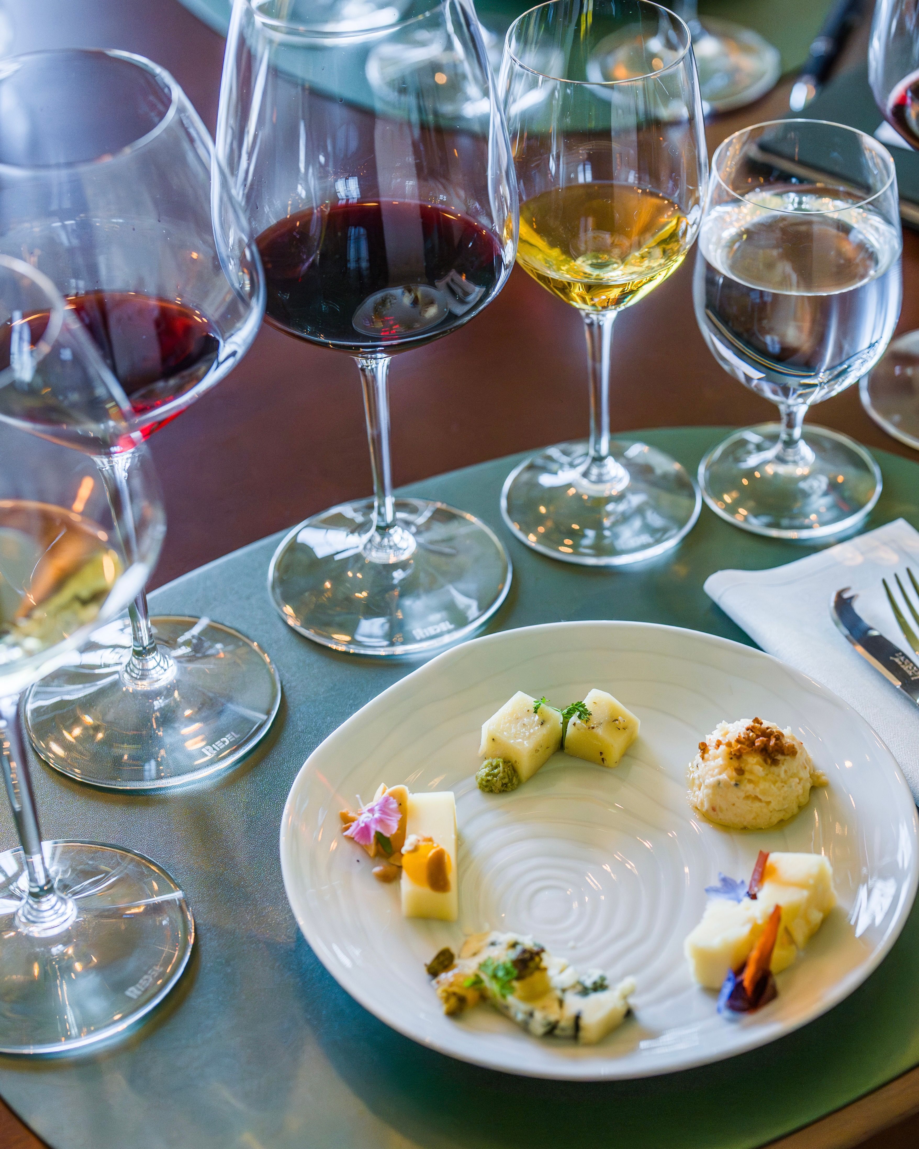 Our new partnership with Point Reyes Cheese brings a layer of depth to every pour. Composed in collaboration with our Estate Chefs and Winemaking team, each pairing was chosen not just to complement, but to draw something forward in the glass. The bright acidity of our Napa Valley Chardonnay finds its counterpoint in the creamy richness of their iconic Toma, while the earthy complexity of Bay Blue meets the lush sweetness of Dolce.